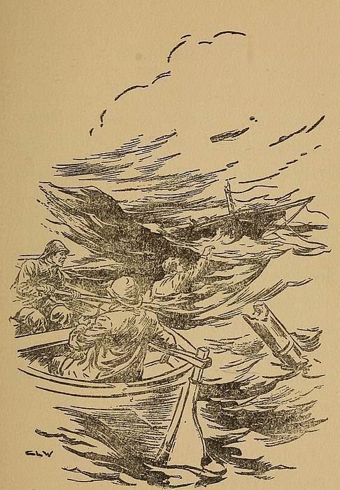 “All at once, afore any of us knowed a thing, there she was overboard. We all lost our heads, I guess. Anyhow, if it hadn’t been for a lad that suddenly bobbed up from no place in particular she might have drown-ded.”