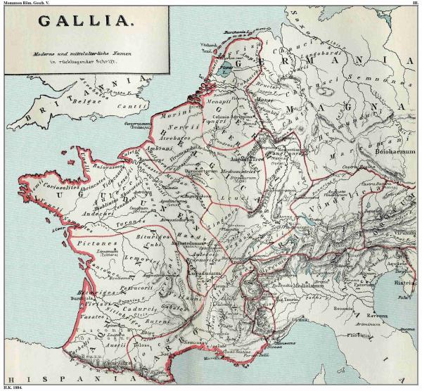 Organisation of the province Germany. The Romans, however, did not make mere military arrangements in the newly acquired domain. The Germans were urged, like other provincials, to have law administered to them by the Roman governor, and the summer expeditions of the general gradually developed into the usual judicial circuits of the governor. The accusation and defence of the accused took place in the Latin language; the Roman advocates and legal assessors began, on the right as on the left side of the Rhine, their operations, sorely felt everywhere, but here deeply exasperating to the barbarians, who were unaccustomed to such things. Much was lacking to the full carrying out of the provincial organisation; a formal assessment of taxation, a regulated levy for the Roman army, were not yet thought of. But as the new cantonal union had just been instituted in Gaul in connection with the divine adoration of the monarch there introduced, a similar arrangement was made also in the new Germany. When Drusus consecrated for Gaul the altar of Augustus at Lyons, the Germans last settled on the left bank of the Rhine, the Ubii, were not received into this union; but in their chief place, which, as regards position, was for Germany nearly what Lyons was for the three Gauls, a similar altar for the Germanic cantons was erected, the priesthood of which was, in the year 9, administered by the young Cheruscan prince Segimundus, son of Segestes.