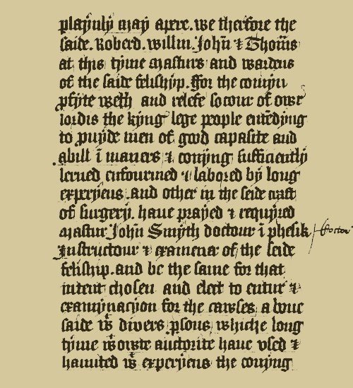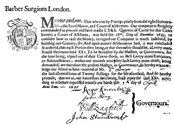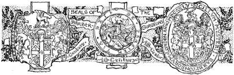 I may here take the opportunity to remark that the Barbers and Barber-Surgeons held a somewhat distinctive position apart from other Companies, inasmuch as they were a Professional rather than a Trade Guild, and their History, consequently, becomes invested with an especial interest. Another point to which I, as a Barber, am proud to refer is that our Company stood out, alone, as the pioneer of Technical Education, hundreds of years before it became as popular as it now is. From the middle of the fifteenth century the Company was careful to provide for Surgical Lectures, and the regular and systematic instruction of its members. The means originally employed may have been primitive, but they were dictated by high motives, and gradually extended and developed; a Museum (a poor one, it is true) and a valuable Library were founded, an Anatomical Theatre was built, and every opportunity taken to encourage the Scientific study of Surgery—all with results fraught with the greatest benefit, not only to London, but to the Kingdom at large.