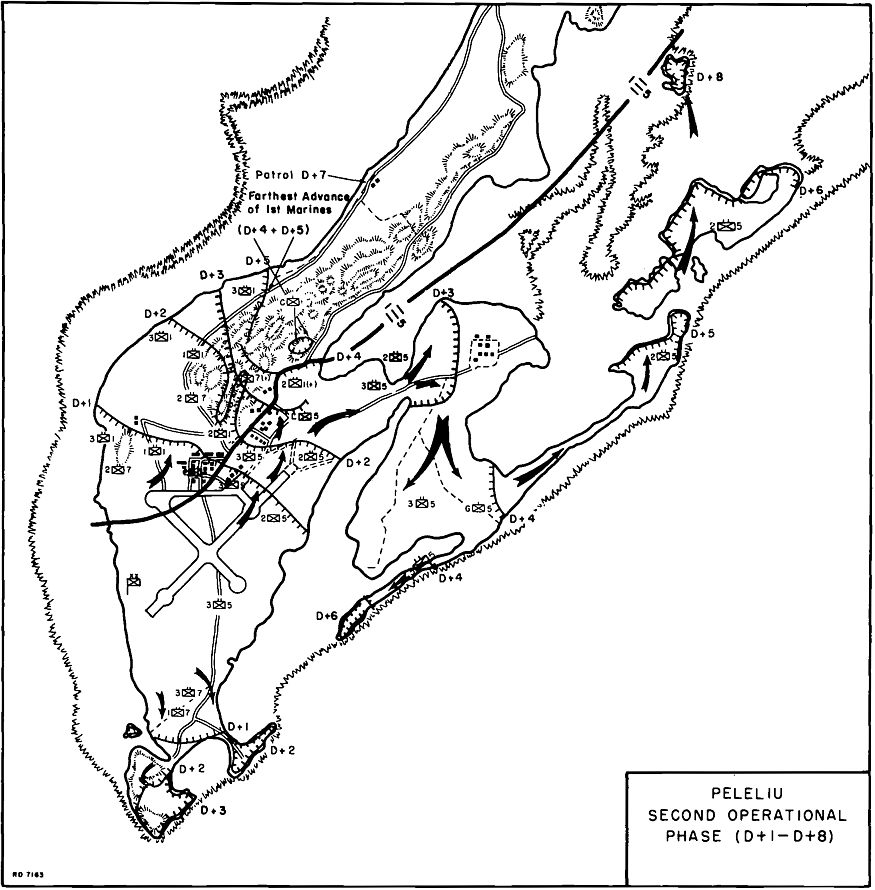 Other maneuver elements on Peleliu also were attacking during those 36 hours, but at an intensity adjusted to the limited support consequent upon General Rupertus’ all-out support of the day’s primary objective.