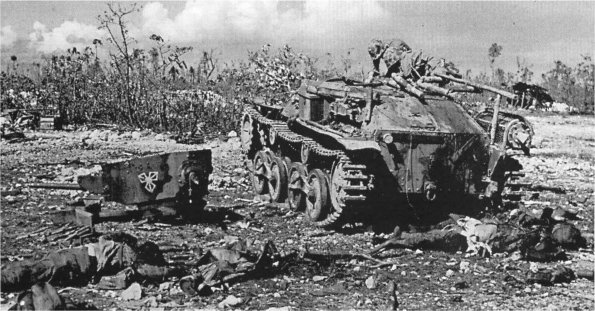 Colonel Nakagawa’s attack was courageous, but proved to be a total failure. Even where the tanks broke through the Marine lines, they induced no Marine retreat. Instead, the Japanese armor became the focus of antitank fire of every sort and caliber. The light Japanese tanks were literally blown apart. More than 10014 were reported destroyed. That figure, of course, reflected the amount of fire directed their way; each Marine grenadier, antitank gunner, and tanker thought he had killed the tank at which he shot, and so reported.