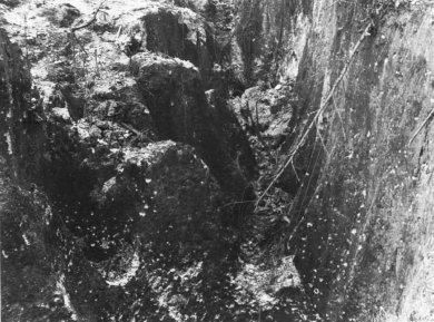 Embrasures in this well-sited, heavily reinforced position, possibly in the Pocket, indicate the location of Japanese weapons which devastated attacking Marines.