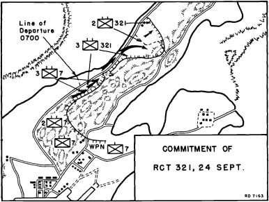 When the 321st’s probes eastward36 near the northern end of the Pocket brought them within grasp of sealing off that Pocket from the north, they deployed two battalions (2d and 3d) facing eastward to complete the encirclement.