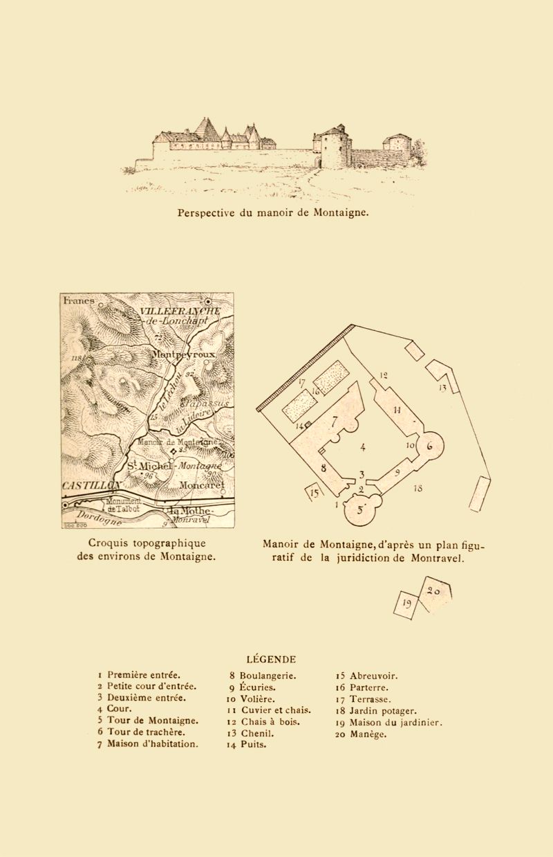 2e vol.—Plan du domaine et perspective du manoir de Montaigne.