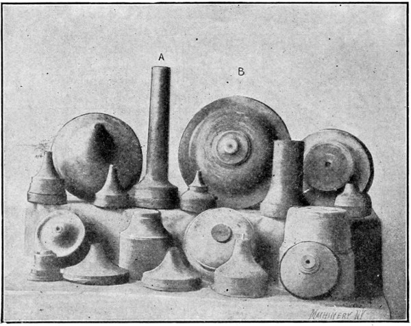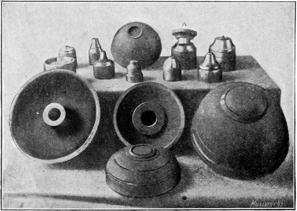 Fig. 22. Various Steps in Spinning the Two Brass Shells at the Right