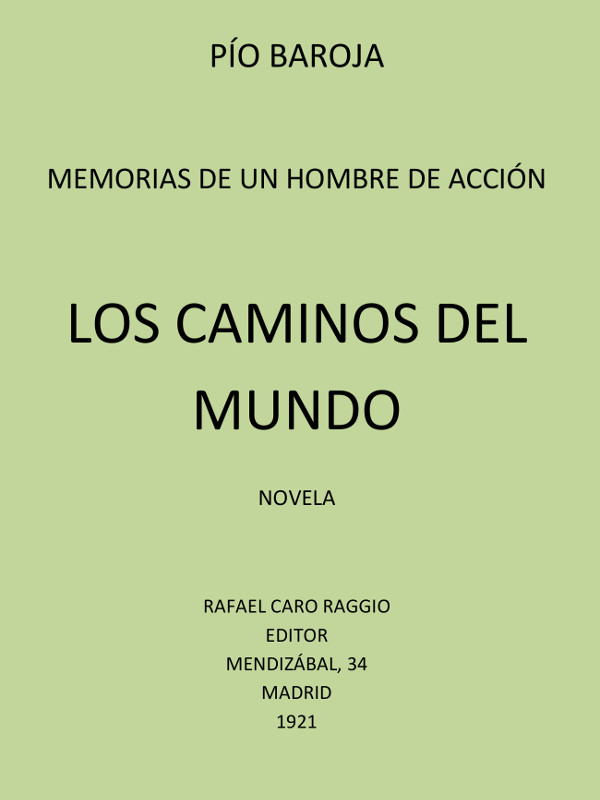 The Project Gutenberg EBook of Memorias de un Hombre de Acción: #3 Los Caminos del Mundo, by Pío Baroja This eBook is for the use of anyone anywhere in the United States and most other parts of the world at no cost and with almost no restrictions whatsoever. You may copy it, give it away or re-use it under the terms of the Project Gutenberg License included with this eBook or online at www.gutenberg.org. If you are not located in the United States, you'll have to check the laws of the country where you are located before using this ebook. Title: Memorias de un Hombre de Acción: #3 Los Caminos del Mundo Author: Pío Baroja Release Date: June 25, 2015 [EBook #49280] Language: Spanish Character set encoding: ISO-8859-1 *** START OF THIS PROJECT GUTENBERG EBOOK MEMORIAS DE UN HOMBRE *** Produced by Carlos Colón, University of Toronto and the Online Distributed Proofreading Team at http://www.pgdp.net (This file was produced from images generously made available by The Internet Archive)