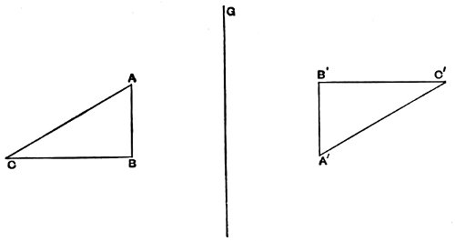 The straight line A B gives rise to the square A B C D by a movement at right angles to itself. If motion be confined to the straight line A B, a backward and forward motion is the only one possible. No sideway motion is admissible. And if we suppose a being to exist which could only move in the straight line A B, it would have no idea of any other movement than to and fro. The square A B C D is formed from the straight line by a movement in a direction entirely different from the direction 12 which exists in A B. This motion is not expressible by means of any possible motion in A B. A being which existed in A B, and whose experience was limited to what could occur in A B, would not be able to understand the instructions we should give to make A B trace out the figure A B C D.