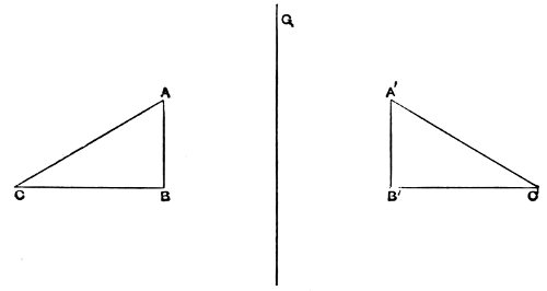An observer standing in the corner of a room has three directions naturally marked out for him; one is upwards along the line of meeting of the two walls; another is forwards where the floor meets one of the walls; a third is sideways where the floor meets the other wall. He can proceed to any part of the floor of the room by moving first the right distance along one wall, and then by turning at right angles and walking parallel to the other wall. He walks in this case first of all in the direction of one of the straight lines that meet in the corner of the floor, afterwards in the direction of the other. By going more or less in one direction or the other, he can reach any point on the floor, and any movement, however circuitous, can be resolved into simple movements in these two directions.