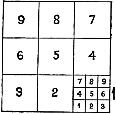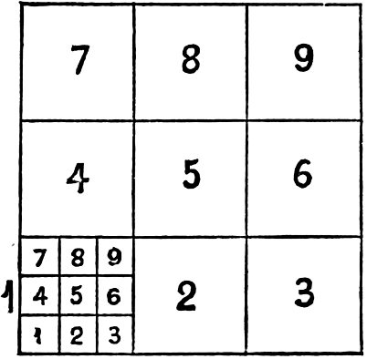 In the same way any other question about the four-square 15 can be answered. We must throw aside our realising power and answer in accordance with the analogy to be worked out from the three figures we know.