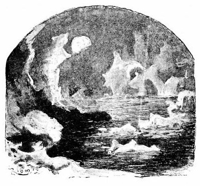 Our little dingy followed far behind us, at the extremity of forty yards of hawser, through this liquid and dancing chaos. We lost sight of it every moment, then suddenly it would reappear perched on the summit of a wave, floating along like a great white bird.