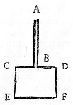 The Pressure of the Atmosphere on the internal Surface of the Lungs, as computed in the foregoing Pages, so much exceeding that made by the ingenious Dr. Kiel, in the last Edition of his Book of Animal Secretion, it may not be amiss for the farther Illustration of it, to show that the Weight computed by that Learned Author is not really the whole Pressure of the Atmosphere, but the Force of the Lungs in Expiration, by which they exceed the Pressure of the Air upon them. For let the Tube A B be inserted into the Vessel C D E F of any given Dimension, and both the Tube and Vessel fill'd with Water or any other Fluid, it is evident from the Writers in Hydrostatics, that the Vessel [pg 62] C D E F will be pressed upon on every Part of its Internal Surface equal to the Basis of the Tube, by the Weight of a Column of the contained Fluid of the same Height with the Fluid, and whose Base is equal to that of the Tube, and consequently every Inch Square on the Internal Surface of the Lungs will be pressed upon by a Column of Air, whose Height is equal to that of the Atmosphere, and base one Inch Square, which will amount to the aforesaid Sum. Vide Pag. 34 & 35. Now if we suppose the Tube X inserted into the Neck of the Bladder Y and the Air forced into the Bladder in Expiration, to an equal Density with that of the incumbent Atmosphere, it is evident that the Air will not go out by the Tube without some external Force, being in Æquilibrio with the Atmosphere, and consequently the Force by which it is expressed thro' the Tube, must be that by which it exceeds the Pressure of the Atmosphere, upon the Orifice of the Tube.