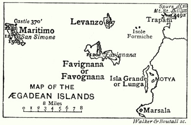 Trapani and Ægadean islands from Mt. Eryx, sketch of, 178