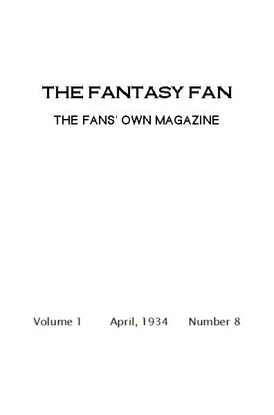 "The March THE FANTASY FAN looks like an excellent issue—typographical impression improved. But may I ask that some extremely misleading misprints in my letter be corrected? One is especially bad, giving a direct contradiction of what I really wrote—this being the substitution of AN for NO in the phrase meant to read 'no especial morbidity.' (Your Views department). Other[Pg 3] errors are 'prospection' for 'perspective' and the omission of 'g' from the word judgment.