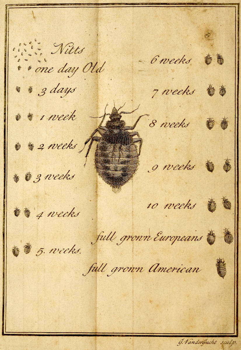 Having gain’d this great Point, I then went on briskly, and destroyed Buggs and Nits in all Beds and Furniture wherever I came: But yet Young Ones from behind Wainscot and out of Walls would sometimes afterwards appear, get to the Beds for better quarters and food, and become troublesome.