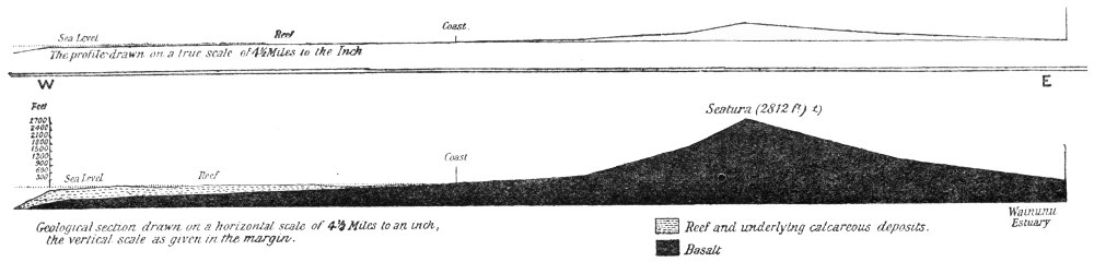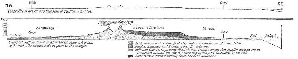 | Profile and Geological Section of Vanua Levu, across the island from the Sarawanga (north) coast to the Yanawai (south) coast | 107 | |