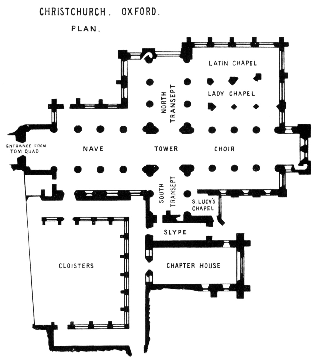For one who has learnt the best of what he knows within Christ Church walls it has been very pleasant to gather these notes of the Cathedral's history and architecture. Moreover, I am less remorseful than I might be at adding to the world's overcrowded library, because certain recent discoveries in the Cathedral have thrown the best of the old books out of date, and made it necessary for some one to weave together the older and the later knowledge. My indebtedness, therefore, is not only to former labourers in this field, but especially to the author of these discoveries, Mr J. Park Harrison, who roused my enthusiasm in the old days, and now has most generously helped me with his advice, and allowed me to incorporate in these chapters the substance of his own papers. To these pamphlets I would refer any who wish to go to the fountainhead for the account of the investigations, and especially I may mention two: "The Pre-Norman Date of the Choir and some of the Stone-work of Oxford Cathedral," and the "Account of the Discovery of the Remains of three Apses at Oxford Cathedral" (Oxford: Frowde, 24 and 23 pp.). I must also express my thanks for the kindness and help of Professor York Powell, and of Mr W. Francis, the senior verger, and to Messrs Carl Norman & Co. of Tunbridge Wells, Mr W. Giles, Mr Park Harrison, and Mr R. Phené Spiers, F.R.I.B.A., for the loan of and permission to reproduce various drawings and photographs.