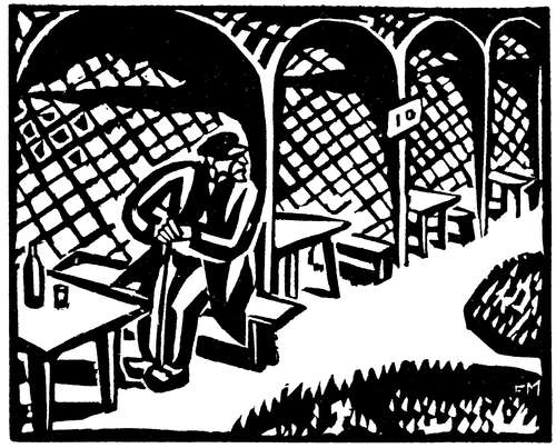 Peinlich berührt, wie es eben einer ist, der ein leeres Portemonnaie in der Tasche hat, antwortet er. Eine große Angst ist über ihn gekommen. Lange schon sitzt er so; der Rest des Weines genügt nicht mehr, seine Gegenwart in der Laube zu rechtfertigen. Er spürte, daß der ausgedehnte Schoppen dieses wunderlichen Alten aus dem Bürgerspital dem Wirt Beunruhigung einzuflößen beginnt.