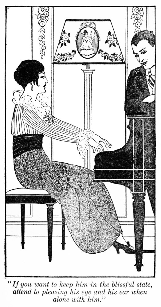 Supposing you have returned from your honeymoon still mistress of the situation, and, taking no trouble to please your husband, are just asserting your own individuality and only consulting your own likes and dislikes. Remember you have all your lives in front of you, and that satiety is an ever-present danger. He adores you still—but he will see you every day, and, if you take no pains to please him, that fact will militate against a continuance of his adoration, and you may suddenly realize that he is less eager to worship you—calmer under your caprices, not so disturbed at your displeasure, and you will know that, unless you use every art a woman possesses, your power over his emotions will continue to wane.