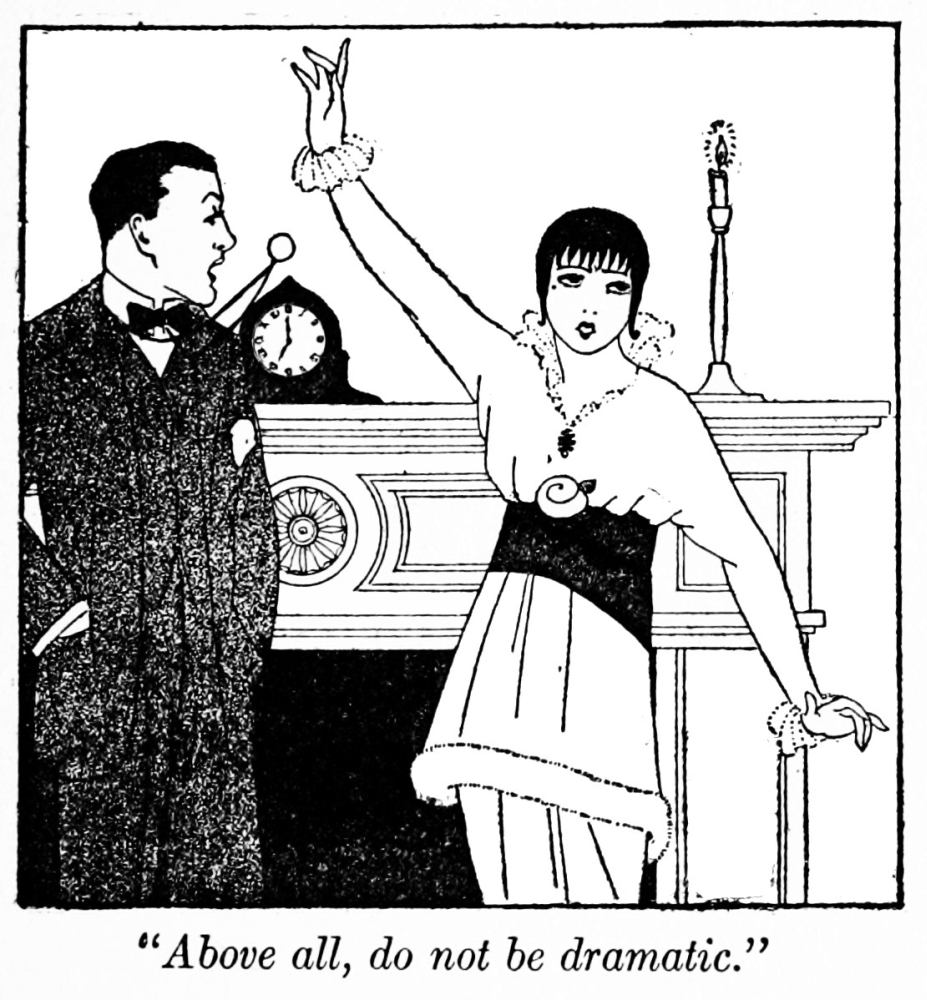 or two utterly disillusioned and disgusted—what then is best to be done? Look the whole situation carefully in the face, and see what roads will lead to better or worse conditions. Above all, do not be dramatic. The ineradicable, insatiable dramatic instinct in some women has caused them, for the pleasure they unconsciously take in a “scene,” to ruin their own and their husbands’ lives. Men are not dramatic: they do not “make scenes”—they loathe them; they loathe exhibitions of emotion which, nine times out of ten, do not occur until some action of their own provokes them, the action having proved that their interest in their wives is going off. The wise woman instantly appreciates this point, and knows that, if she gives way to her, perhaps just, reproaches, she will be adding another millstone round her own neck in a further weakening of her attraction for, and influence over, the man. The wise woman makes quite sure that the matter which has annoyed her is really important—she banishes it if not, and, if it is, she states her case quietly and with dignity, so that her husband can answer her without heat, and give her explanations—or excuses.