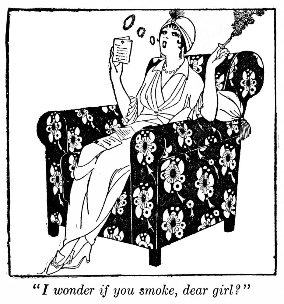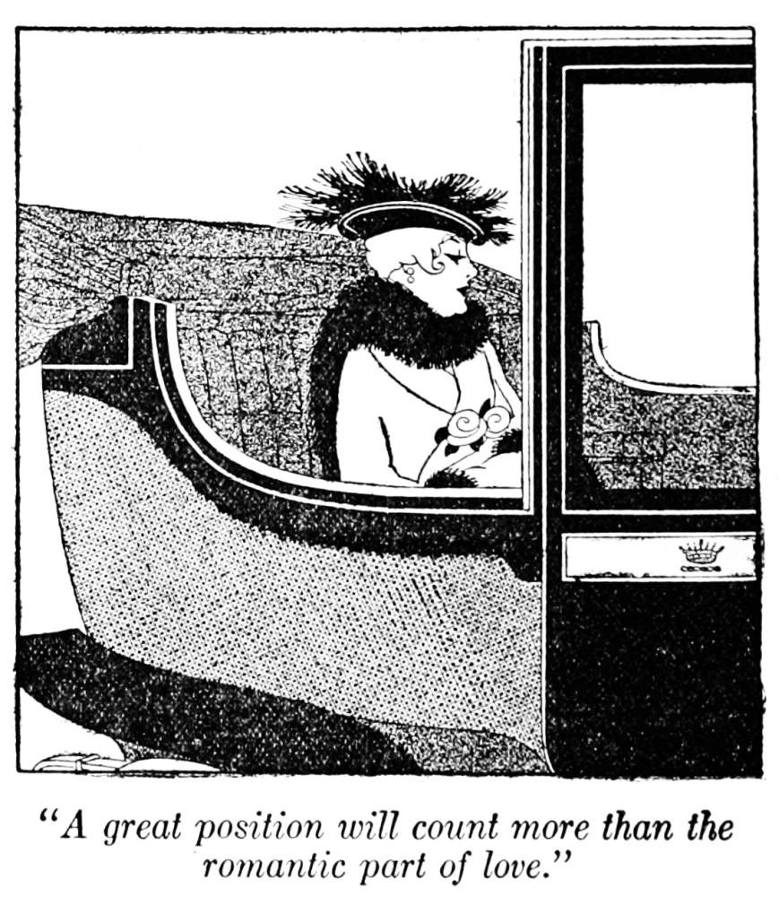 Do not endeavor to learn too many steps. Stick to a few until you can do them so well that you can dance with any good partner without that look of strain overspreading your face, and in the certainty that you will be able to follow his lead. You can say to him as you start, “I only know such and such steps.” Try at first to peep at yourself moving in some long mirror—notice if your attitude is graceful and sufficiently reserved without being stiff. And one thing I do implore of you, Caroline, do not cavort constantly with any creature who may have crept into the houses where you go, just because he is a good Tango dancer, if he has no other quality to recommend him. Try to stick to the young men of your own class and set, whose company you are accustomed to in other games and other moments. They will learn to become good dancers soon enough when they find that for them to do so is the wish of the nicest girls. If you want an instance of what I mean, there was a perfectly admirable illustration in the Daily Mirror not long ago in that page where the funny sketches are. I think it was called “Her Ladyship’s Tango Partner,” or some such title, and was quite exquisitely humorous—and gives the exact note of what I am advising you about. If you did not happen to see it get the back numbers and look it up, as it will show you exactly the way that it is undesirable that you should have to look at those young men whom you allow to be your partners. When they have sunk into just that “Her Ladyship’s Tango Partners,” then you can know that I should not approve of your dancing with them. Unless you have deliberately paid them to teach you, when the situation is different and you turn into pupil and master, not a thoughtless Caroline, using some humble person for her own ends without remuneration, or with the remuneration of favors which should only be granted to those of her own class.