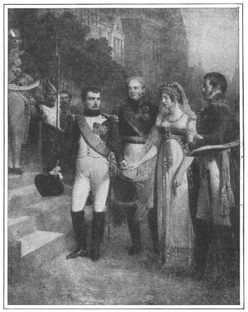 It was with his ally, Russia, that the first break came. That Napoleon was startled by the idea of war with Alexander and sought to prevent it, is certain; but Alexander refused to yield to his demand that the embargo against English goods be enforced. The embargo he had set down as the “fundamental law of the Empire.” There was nothing to do but settle it by arms, and in the summer of 1812, with an army of over half a million men, he began a reluctant and hesitating march against Russia. It was a campaign of terrible disasters. The Russians retreated before him, letting cold and hunger do the work of battles. So effectively did they work that the French army was practically destroyed. The Russian campaign is one of the most appalling in history. It was but the beginning of his overthrow. Alexander raised the cry “Deliver Europe!” Stein and other liberal minds rallied the youth of the11 German states into a league, pledged to fight for national freedom. His allies and dependences began to demand the return of lost territories as a price of loyalty. France revolted at the prospects of continued bloodshed. The campaigns thrust upon him by all these forces were fought; but frequently without his old genius.