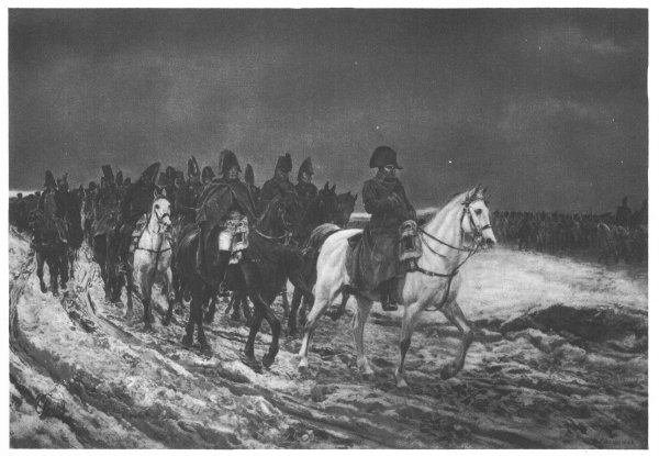 RETREAT FROM MOSCOW, from the painting by Meissonier, is the subject of one of the intaglio-gravure pictures illustrating “Napoleon Bonaparte.”