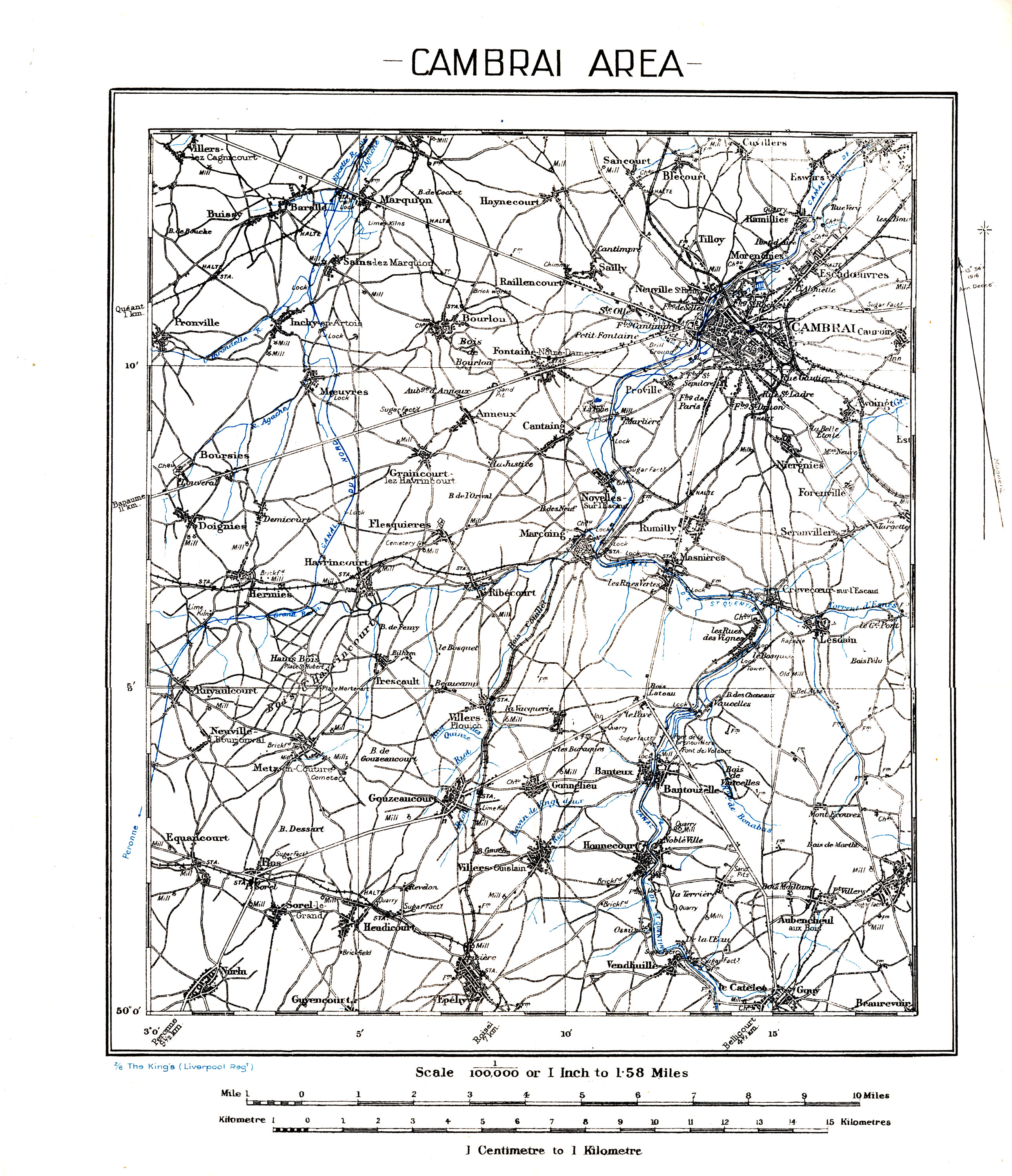 The 2/6th "The King's" (Liverpool Regiment) took part with distinction in all the fighting of the Division from February, 1917, up to the Armistice. The battalion showed its offensive spirit in the third battle of Ypres, the breaking of the Drocourt-Quéant switch of the Hindenburg Line, the battle of Cambrai, and the capture of Lille; and its steadiness in defence during the long periods of trench warfare, and especially in the terrible gas bombardment of Armentières.