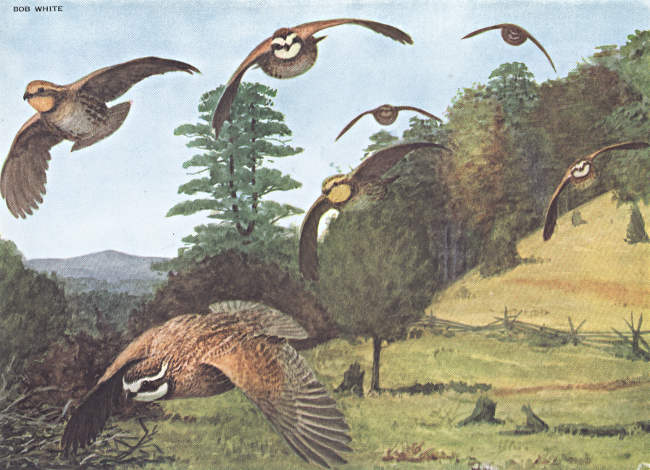“Bob white! You bob white!” cries a brave little fowl from the top rail of the old fence. His call is the embodiment of cheerfulness. There is something heartening in the sound. This is due in part to its rich and vigorous quality, and in part to its rising termination—the question in the final note—as if it said “All right there, Fellows?” How different from the note of the whippoorwill, with its falling inflection and its general expression of sad finality. The whippoorwill may be a cheerful bird. One is inclined to doubt it; but we know Bob White is happy. Just hear him! He looks it too. Thus this cheerful little optimist makes his way to the hearts of men. Even the sportsmen who slay him love him, and are often his best friends,—after the shooting season,—and the epicure loves him—on toast. Down South they call him partridge. In the North he is known as the quail; but the ornithologists, who try to settle such matters for all, have taken his word for it and have named him Bob White.