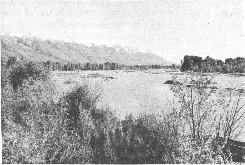 The Teton Mountains are the most conspicuous landmarks of a region which contains the scrambled sources of the three greatest river systems of continental United States. As we have seen, Yellowstone Park to the north gives birth to the eastward-flowing Missouri and the westward flowing Columbia waters. East of the Tetons, in the Wind River Mountains, is the head of Green River which rolls southward to merge into the mighty Colorado River, tumbling through the arid lands to the Gulf of California.