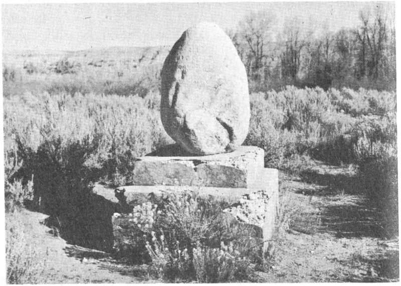 The key to Colter’s route is the identification of Lakes Jackson and Yellowstone, respectively, as Clark’s Lake Biddle (named for the patron of his publication) and Lake Eustis (named for the Secretary of War), no longer questioned by historians. The “Hot Spring Brimstone” at the sulphur beds crossing of the Yellowstone River near Tower Falls and the “Boiling Spring” near the forks of the Stinkingwater or Shoshone (see Chapter IV) are other checkpoints which now seem quite firm. In addition, there are two interesting claims of physical evidence. While these are both necessarily debatable and subject to challenge as hoaxes, they deserve consideration. According to Philip A. Rollins, quoted by Vinton: