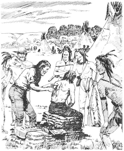 He [Lisa] continued his voyage to the Yellowstone River, where he built a trading fort. He shortly after dispatched Coulter, the hunter before mentioned, to bring some of the Indian nations to trade. This man, with a pack of thirty pounds weight, his gun and some ammunition, went upwards of five hundred miles to the Crow nation; gave them information, and proceeded from them to several other tribes. On his return, a party of Indians in whose company he happened to be was attacked, and he was lamed by a severe wound in the leg; notwithstanding which, he returned to the establishment, entirely alone and without assistance, several hundred miles.