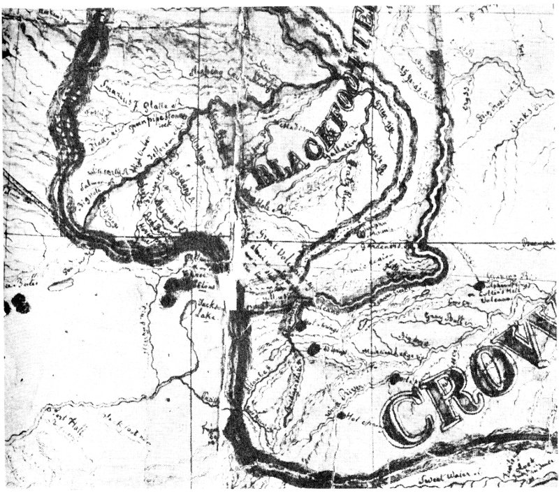 Wilkinson apparently obtained this primitive map from unidentified traders. It could not have been a copy of Clark’s map sent from Fort Mandan the April previous, for it obviously contained new data. In an advice to Henry Dearborn, Secretary of War, dated September 18, 1805, Wilkinson revealed that his interest in Yellowstone curiosities was sufficiently aroused to dispatch an expedition of his own upriver!