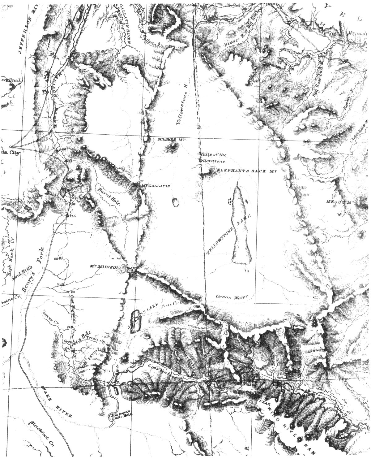 In spite of past efforts by water power advocates to “improve” it by a dam, Yellowstone Lake remains just as it was when first discovered by John Colter, the original “Lake Eustis” of the Clark Map of 1810. Jackson Lake, 8 however, was enlarged by a dam built in 1916 by the Bureau of Reclamation. This lake is identifiable with the “Lake Biddle” of the Clark Map of 1810, the “Teton Lake” of Warren A. Ferris, and the “Lewis Lake” referred to frequently by another trapper, Joseph L. Meek. There is today a tributary of the Upper Snake known as Lewis River, heading in a Lewis Lake within the confines of Yellowstone National Park, neither of which are to be confused with the historic “Lewis River” and “Lewis Lake.”