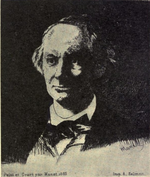 In the one done in 1865, the pride of youth, the dandy, the vivid profile, have disappeared. Here, as if in an eternal aspect, Baudelaire is shown. There is his tragic mask; the glory of the eyes, that seem to defy life, to defy death, seems enormous, almost monstrous. The lips are closed tightly together, in their long, sinuous line, almost as if Leonardo da Vinci had stamped them with his immortality. The genius of Manet has shown the genius of Baudelaire in a gigantic shadow; the whole face surging out of that dark shadow; and the soul is there!