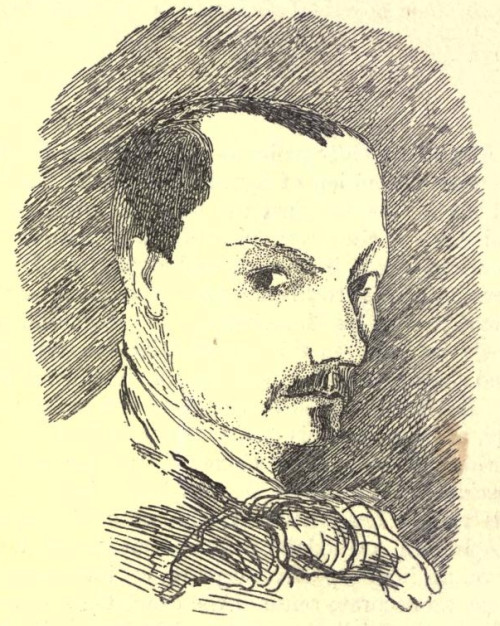 In the portrait by Carjat, his face and his eyes are contorted as if in a terrible rage; the whole face seems drawn upward and downward in a kind of convulsion; and the aspect, one confesses, shows a degraded type, as if all the vices he had never committed looked out of his eyes in a wild revolt.