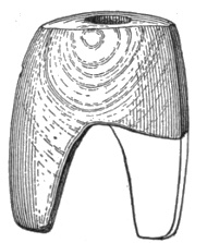 According to Adair and other early observers, the southern Indians had axes of stone, around the grooved heads of which they twisted hickory withes to serve as handles; with these they deadened timber by girdling or cutting through the bark.11 According to travelers of a later generation among the western Indians, similar implements were used on the plains to chop up the vertebræ of buffaloes, which were boiled to obtain the marrow.12