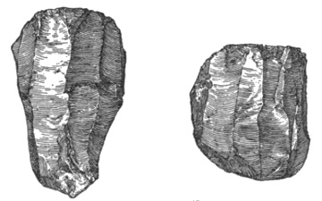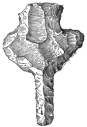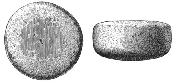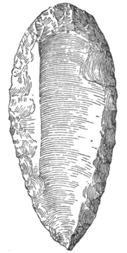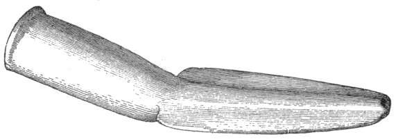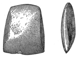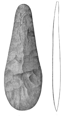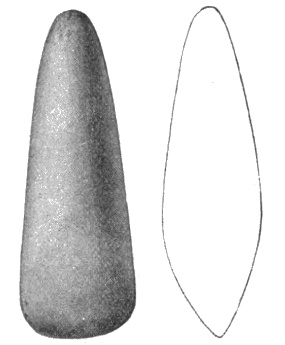 In the eastern and interior states, the grooved axes are far more abundant than the celts of the same size9, because as a rule only the larger implements of this class are grooved. All the ordinary varieties of axes and hatchets are found about Lake Champlain, by far the most abundant being celts, or grooveless axes.10