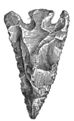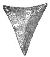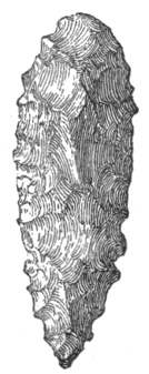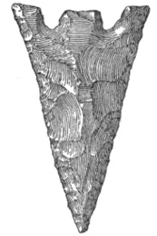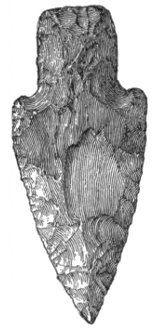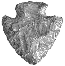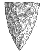 According to Dr. E. B. Tylor, the flint arrows of the Dakota, the Apache, or the Comanche might easily be mistaken for the weapons dug up on the banks of the Thames;1 while cores of flint in Scandinavia and of obsidian in Mexico are exactly alike,2 and a tray filled with European arrowheads can not be distinguished from a tray of American ones.3 Prof. Otis T. Mason observes that the great variety of form in such weapons after they are finished is due partly to nature and partly to the workman’s desire to produce a certain kind of implement. All sorts of pebbles lie at the hand of the savage mechanic, none of them just what he wants. He selects the best.4 Perhaps the truth about the shape is that the savage found it thus and let it so remain.5 59