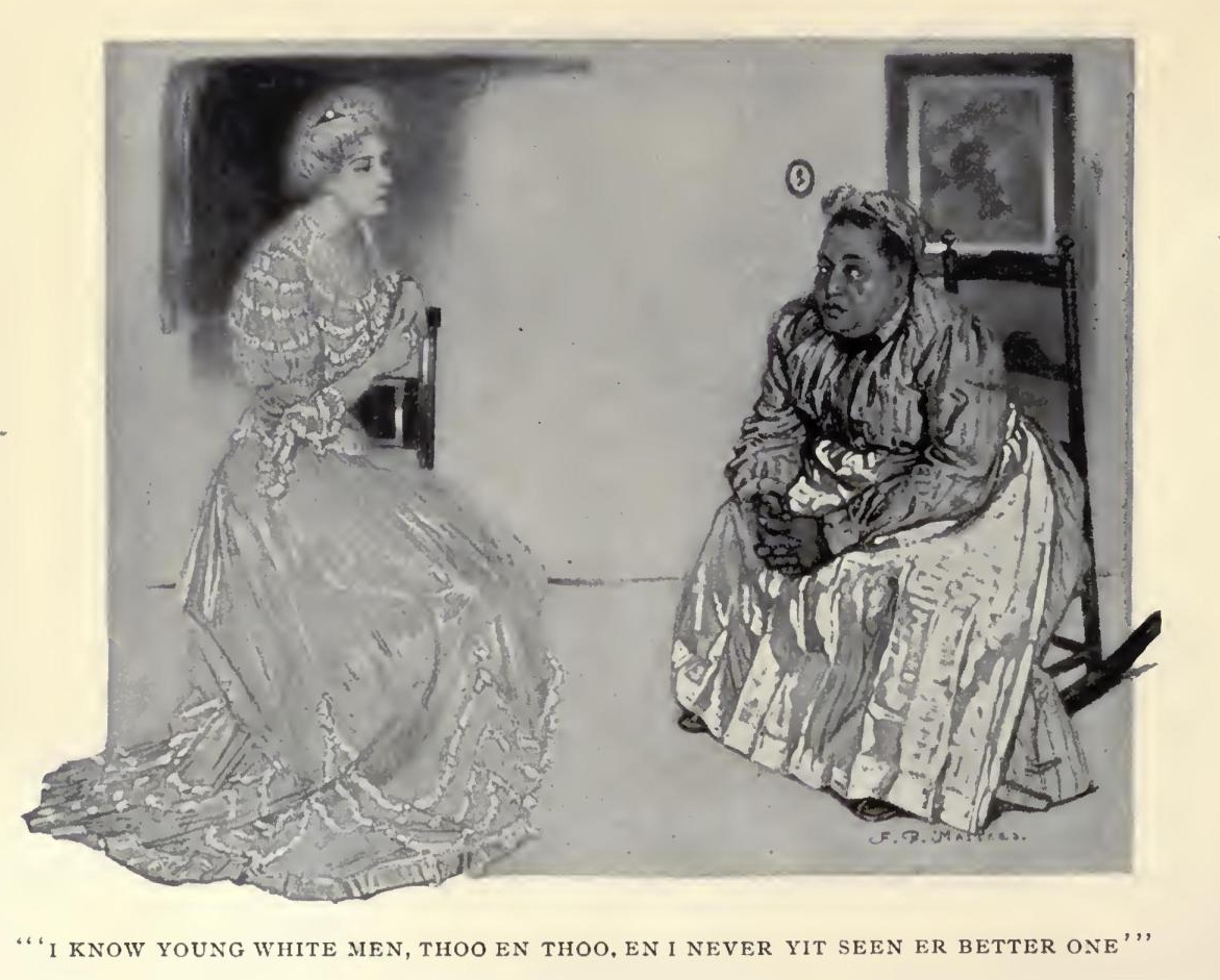 Garner separated himself from the throng, and, clad in a new and costly suit of clothes, a tribute to his engagement to Miss Tarpley—a fine black frock-coat, broadcloth trousers, and a silk hat—he made his way into the house and up the stairs to the veranda above, where Carson and his mother and father were standing.