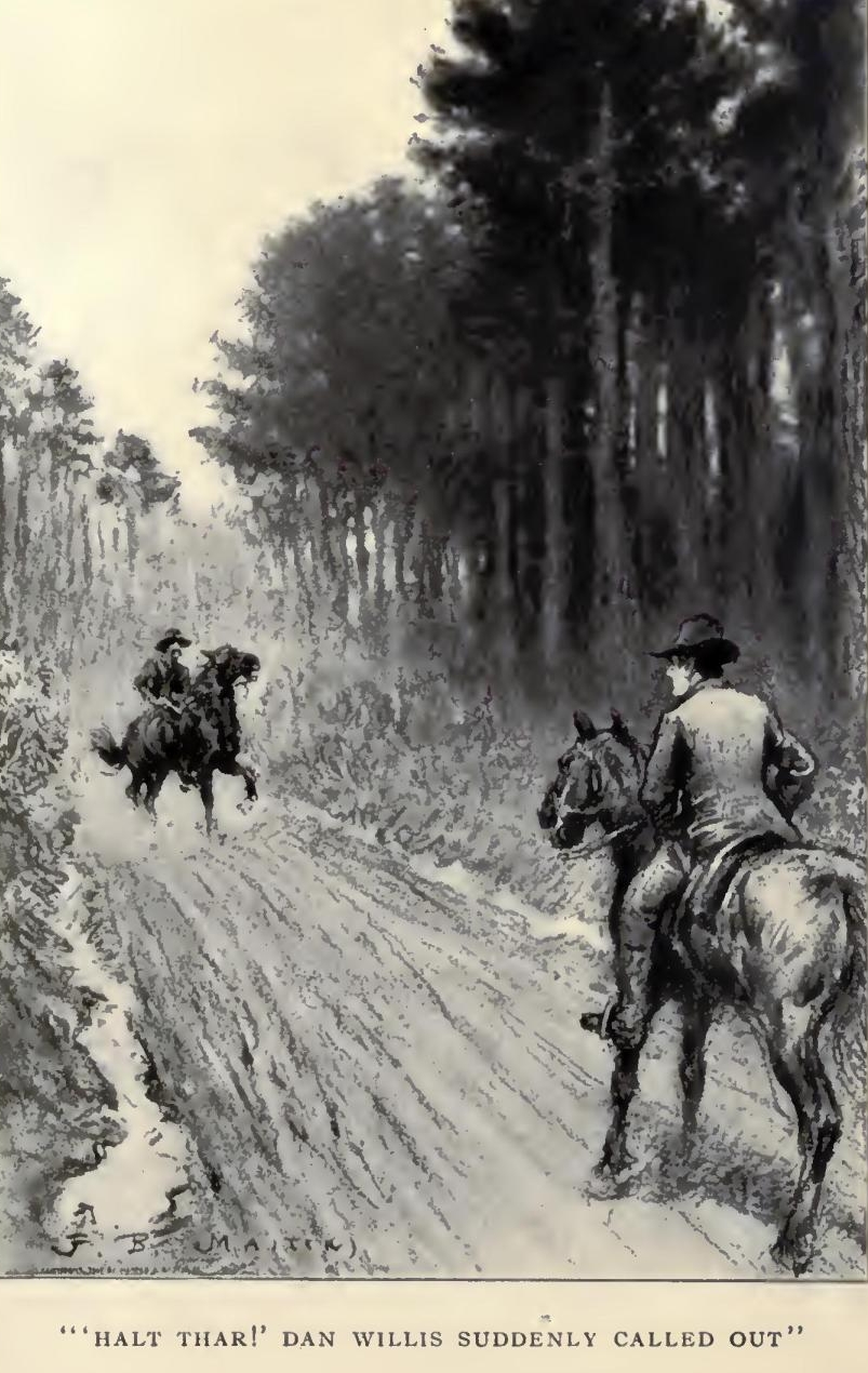 “No; since when have you ever done a lick after dark?” was the dry reply. “I've come to give you a piece of advice, and I'm glad Blackburn is here to join me. The truth is, Dan Willis is in town. He is full and loaded for bear. He's down at the wagon-yard with a gang of his mountain pals. Some meddling person—no doubt your beautiful political opponent Wiggin—has told him what you said about the part he took in the mob that raided! negro town.”