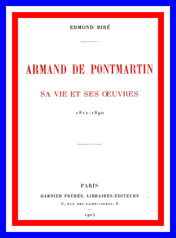 J’ai été l’ami d’Armand de Pontmartin: l’affection et la reconnaissance ont-elles influencé mes jugements? M’ont-elles conduit à parler de lui et de ses œuvres avec trop de faveur? Je ne le crois pas. Comme l’abbé de Féletz, qui venait de louer un de ses amis, je crois être en droit de dire: «L’amitié que j’ai pour lui n’a point enflé les éloges que je lui ai donnés; elle n’a pas dû m’empêcher de lui rendre justice: elle a fait seulement que je lui ai donné ces éloges et rendu cette justice avec plus de plaisir[1].»