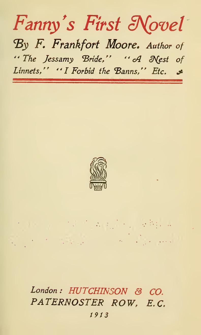 The Project Gutenberg EBook of Fanny's First Novel, by Frank Frankfort Moore This eBook is for the use of anyone anywhere in the United States and most other parts of the world at no cost and with almost no restrictions whatsoever. You may copy it, give it away or re-use it under the terms of the Project Gutenberg License included with this eBook or online at www.gutenberg.org. If you are not located in the United States, you'll have to check the laws of the country where you are located before using this ebook. Title: Fanny's First Novel Author: Frank Frankfort Moore Release Date: May 1, 2016 [EBook #51922] Last Updated: March 13, 2018 Language: English Character set encoding: UTF-8 *** START OF THIS PROJECT GUTENBERG EBOOK FANNY'S FIRST NOVEL *** Produced by David Widger from page images generously provided by the Internet Archive