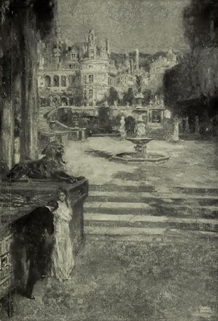 The Marchesa opened the little foot gate, cut like a door in the wall of the park beside the larger gate, and walked slowly up the hill, over the dead plane leaves beginning now to fall. As she advanced the quaint split stone roof and high round wall of Old Newton House came prominently into view. This ancient house, one of the most picturesque in Scotland, deserves a word of comment. It was built in 1500 a.d., as a residence for the royal keepers of Doune Castle, and built like that castle with an eye forward to a siege. The stone walls are at some points five feet thick. The main wing of the house is flanked with a semicircular tower, capped with a round crow-step coping. The windows high up in the wall were originally barred with iron; the holes in the stones are still plainly visible. Under the east wing of the house is an arched dungeon with no ray of light; under the west wing, a well for the besieged. A secret opening in the wall of the third story descends under the Ardoch, it is said, to Doune Castle. To the left are the formal gardens inclosed by a tall holly hedge, and to the right, the green sward of the park. The road climbing the hill turns about into a gravel court.