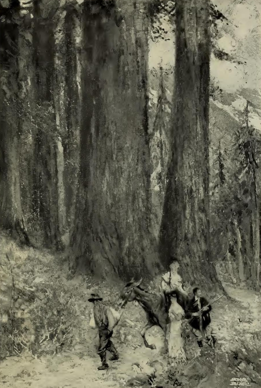 From this square she turned east along a line of shops and white cottages, down a little hill, to an old stone bridge, crossing the Ardoch with a single high, graceful span. South of it stood the restored walls of Doune Castle, once a Lowland stronghold, protected by the swift waters of the Teith, now merely the most curious and the best preserved ruin in the North. East of the Ardoch the land rises into a park set with ancient oaks, limes, planes, and gnarled beeches. Here the street crossing the Ardoch ends as a public thoroughfare, and barred by the park gates, continues up the hill as a private road between two rows of plane trees.