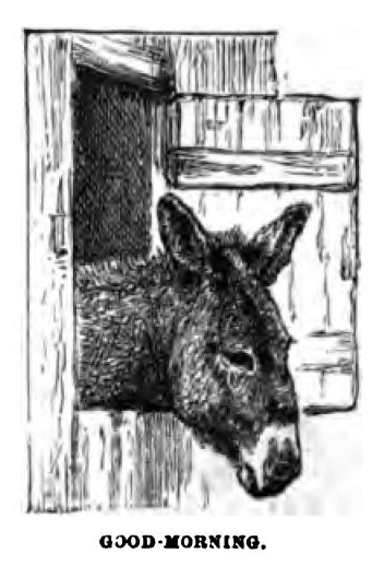 “Unless you watch the grooms closely,” said Mr. Graham to Charley, “you'll very likely find them keeping the windows of the stable closed when they should be open. Grooms like to heat their horses into a condition of moisture in order to give their coats a silky appearance, and their best way of doing this is to keep the windows closed and the air foul. The colonel of an English regiment has said on this subject that the horses of his command live in stables that are constantly open to the air, and consequently are very rarely out of sorts; the same gentleman has a pack of hunting horses at his country seat, and his manager keeps them in stables that are close and hot. The hunters are constantly sick and he attributes it to the bad air in which they are confined.”