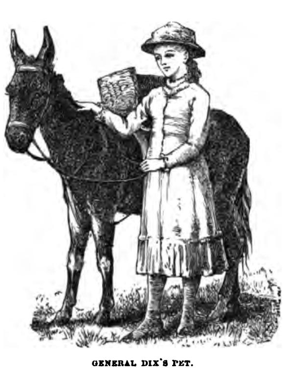 “'Little Emily was not long in learning to harness after she once made Jane's acquaintance; and the great horse would bend her head down meekly while the child, mounting a chair, succeeded after great effort in putting on the bridle. Again Jane would stand with quiet patience while her little mistress tried to curry her, combed out her long mane and tail, patted and hugged her, ran about and under her, or climbed up for a ride on her broad back.