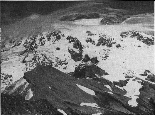 Arctic-alpine Zone: Above the forest line all plant life diminishes rapidly in extent. This is a region of barren, rocky soils; perpetual snow fields; and glacial ice; a bleak and forbidding expanse of awe-inspiring grandeur where the storm king yields supremacy for only a few brief weeks in mid-summer.
