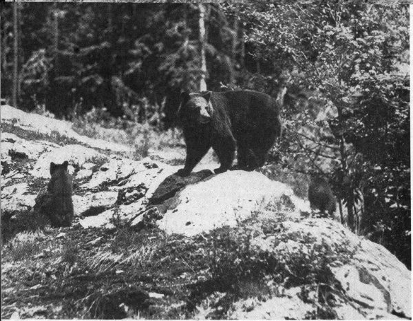The forests of the Canadian life zone afford excellent cover for many mammals throughout the year. In summer such retreats are favored habitats for bear families.