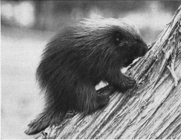 Like the marten, the fisher is a lover of the deep woods and is reportedly very agile in the trees. It feeds principally upon rabbits, squirrels, mice, small birds, and frogs. It is not adverse to killing and eating the marten. One of its most interesting sources of food is the porcupine, which the fisher manages to kill without serious injury from the sharp quills. A litter of from two to four young, which are born in a nest in a hollow log or tree, are raised annually.