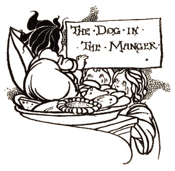 A dog made his bed in a manger, and lay snarling and growling to keep the horses from their provender. "See," said one of them, "what a miserable cur! who neither can eat corn himself, nor will allow those to eat it who can."